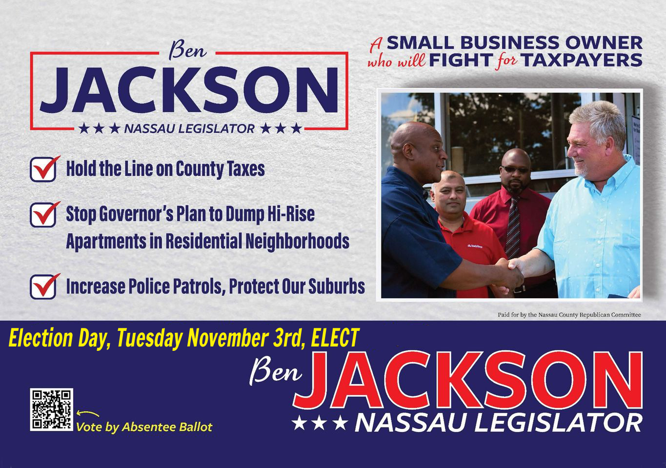 If you are Nassau County resident or small business owner, you are already paying some of the highest per capita tax rates in the country. I will be looking at myriad ways to reduce the tax burden for our citizens and hold the line on new taxes.